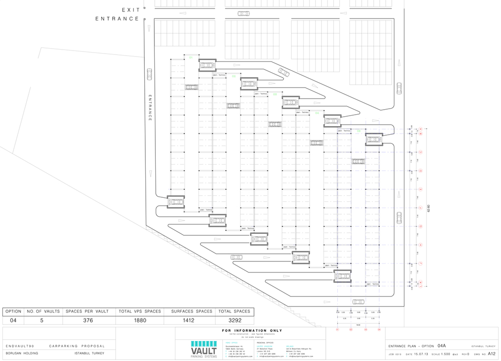 „Parkhaus“, Istanbul (Vollautomatisches Parkhaus, 3.300 Stellplätze) Bauherr: VAULT Parking Systems, Berlin Architekt: Ossa Architects, London Leistung: Tragwerksplanung < Projekte